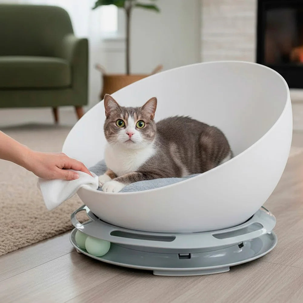Keeping your cat’s favorite space fresh and inviting is effortless! The smooth, wipeable shell makes cleaning quick and stress-free, while the soft inner pillow adds extra comfort for cozy naps. Simply remove the cushion to shake off fur or give it a gentle wash, and wipe the rest of the bed in seconds — no trapped odors, no stubborn messes. Unlike bulky fabric beds, this design stays hygienic and ready for your cat’s next nap or play session. You’ll spend less time cleaning and more time enjoying cuddles with your happy, relaxed pet in a space that’s always clean, cozy, and truly theirs.