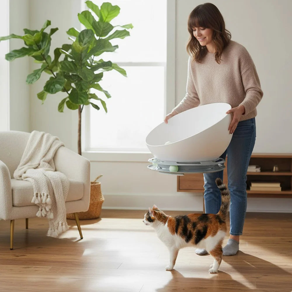 Absolutely! The built-in rolling toy encourages gentle play, stimulating your cat’s natural hunting instincts while keeping them physically active and mentally engaged. Even when you’re busy or away, your cat can enjoy safe, independent play that supports a healthy, happy, and curious lifestyle.