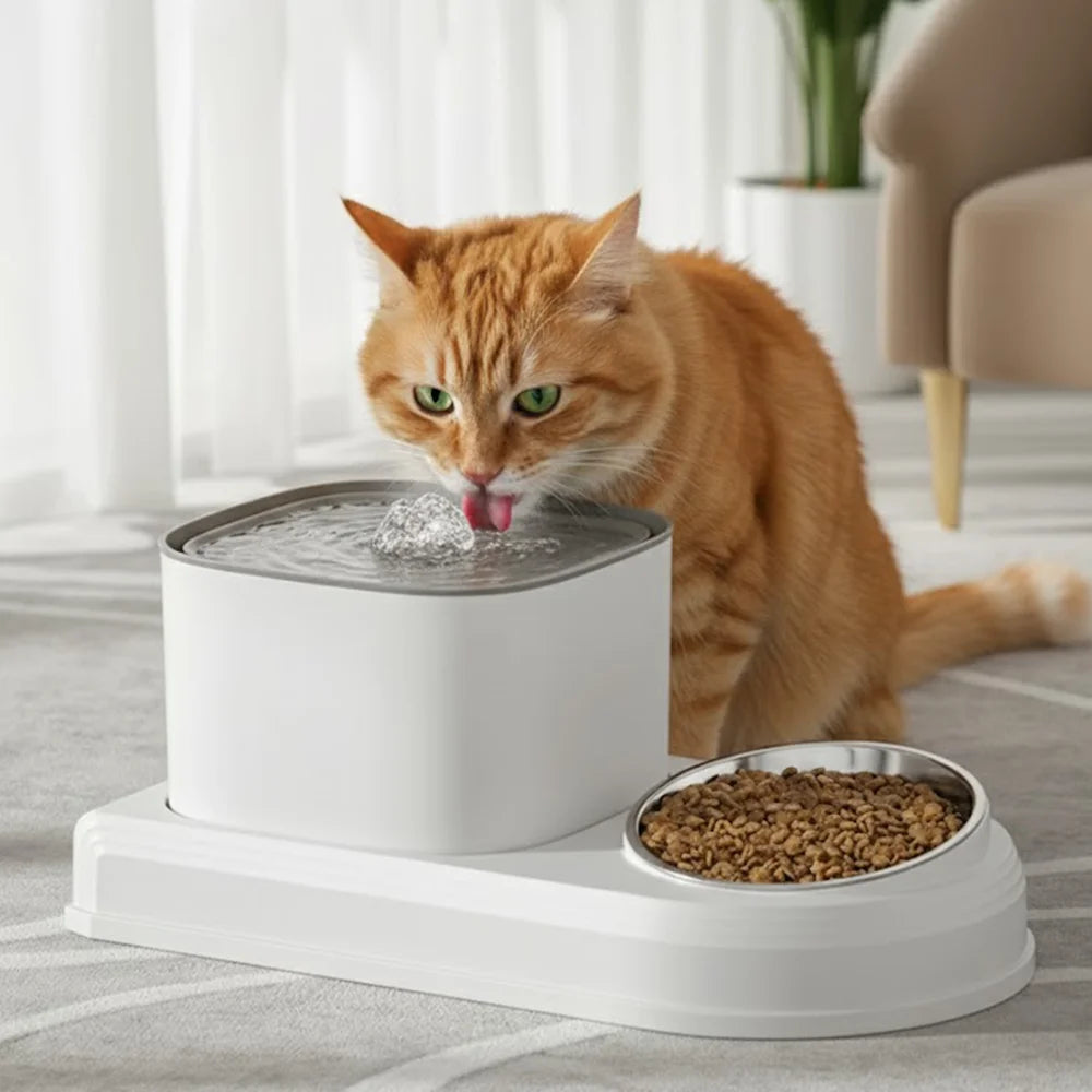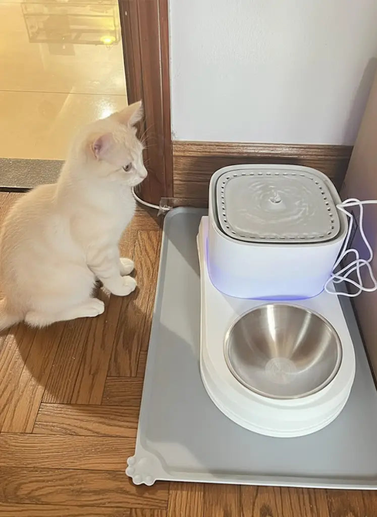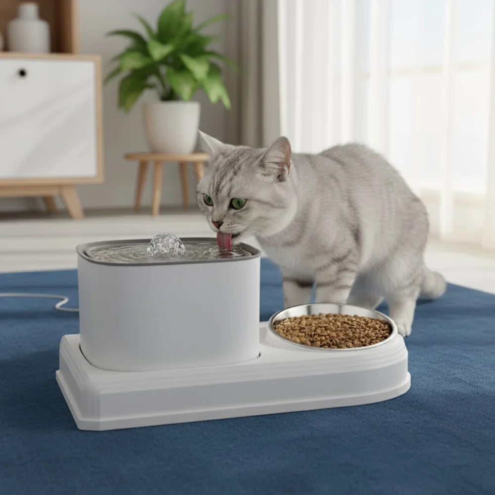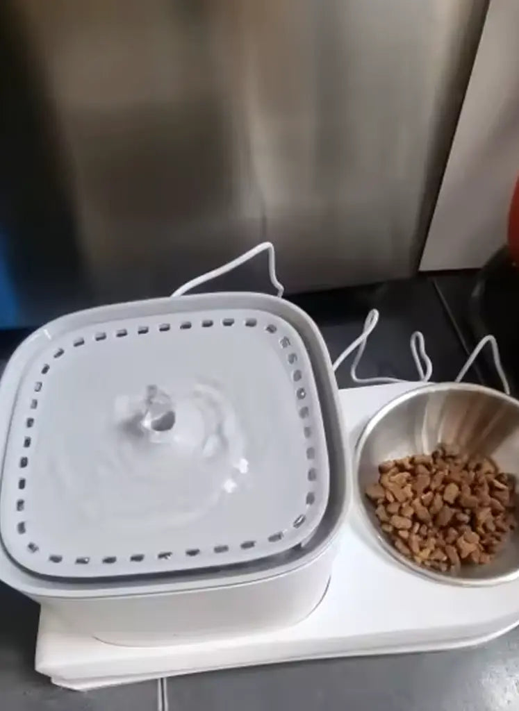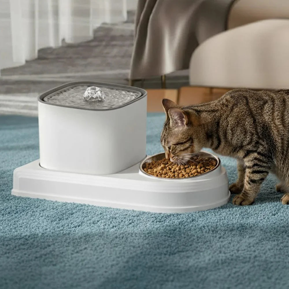 Mess-Free Cat Water Fountain & Feeding Bowl