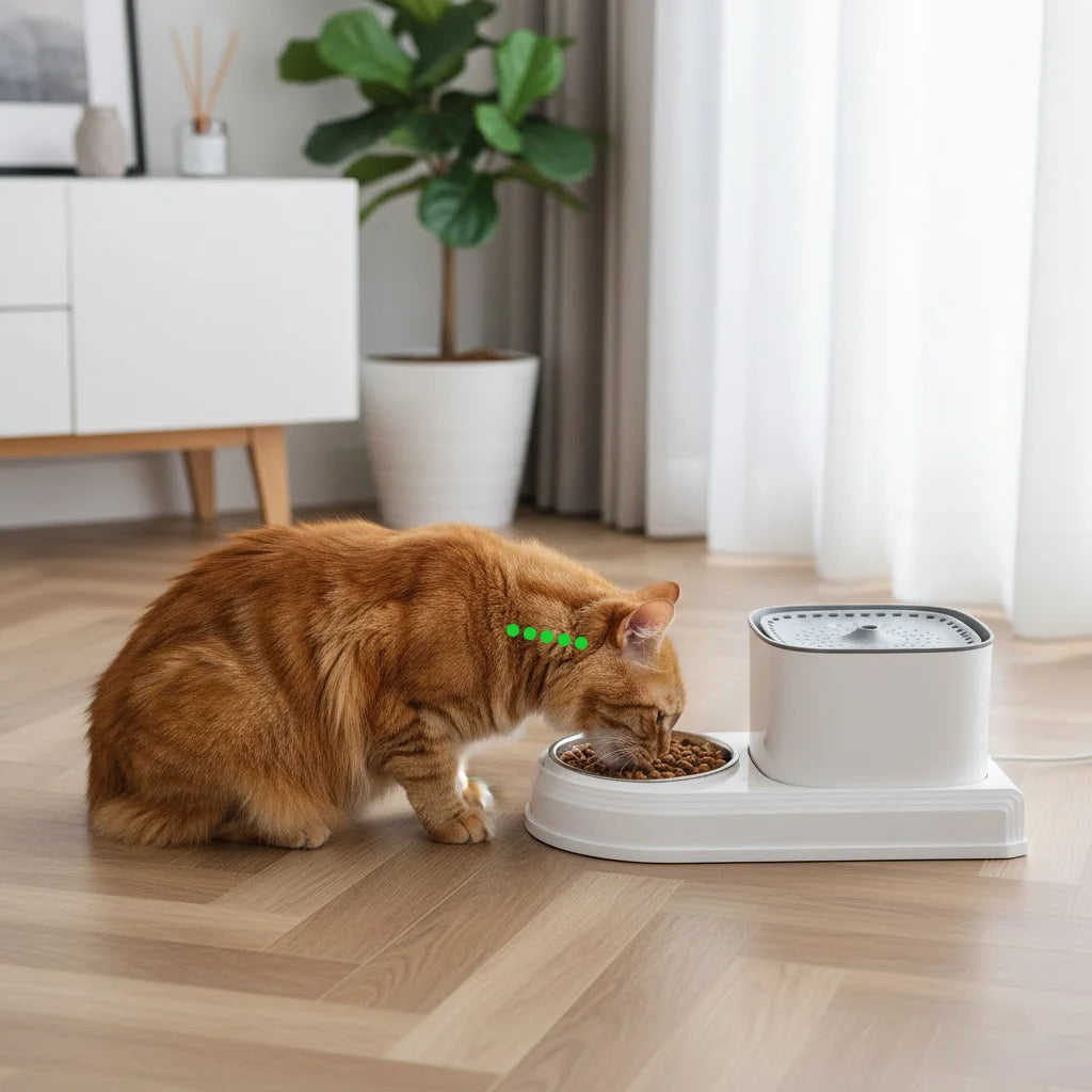 Spilled water and scattered food create constant cleanup for cat owners. This 2-in-1 fountain and feeding bowl keeps both water and food contained, reducing mess on floors and counters. The large reservoir stays full longer, and detachable parts make washing quick and simple. Your cat enjoys a comfortable drinking and eating experience, while you save time, keep your home tidy, and enjoy stress-free pet care.